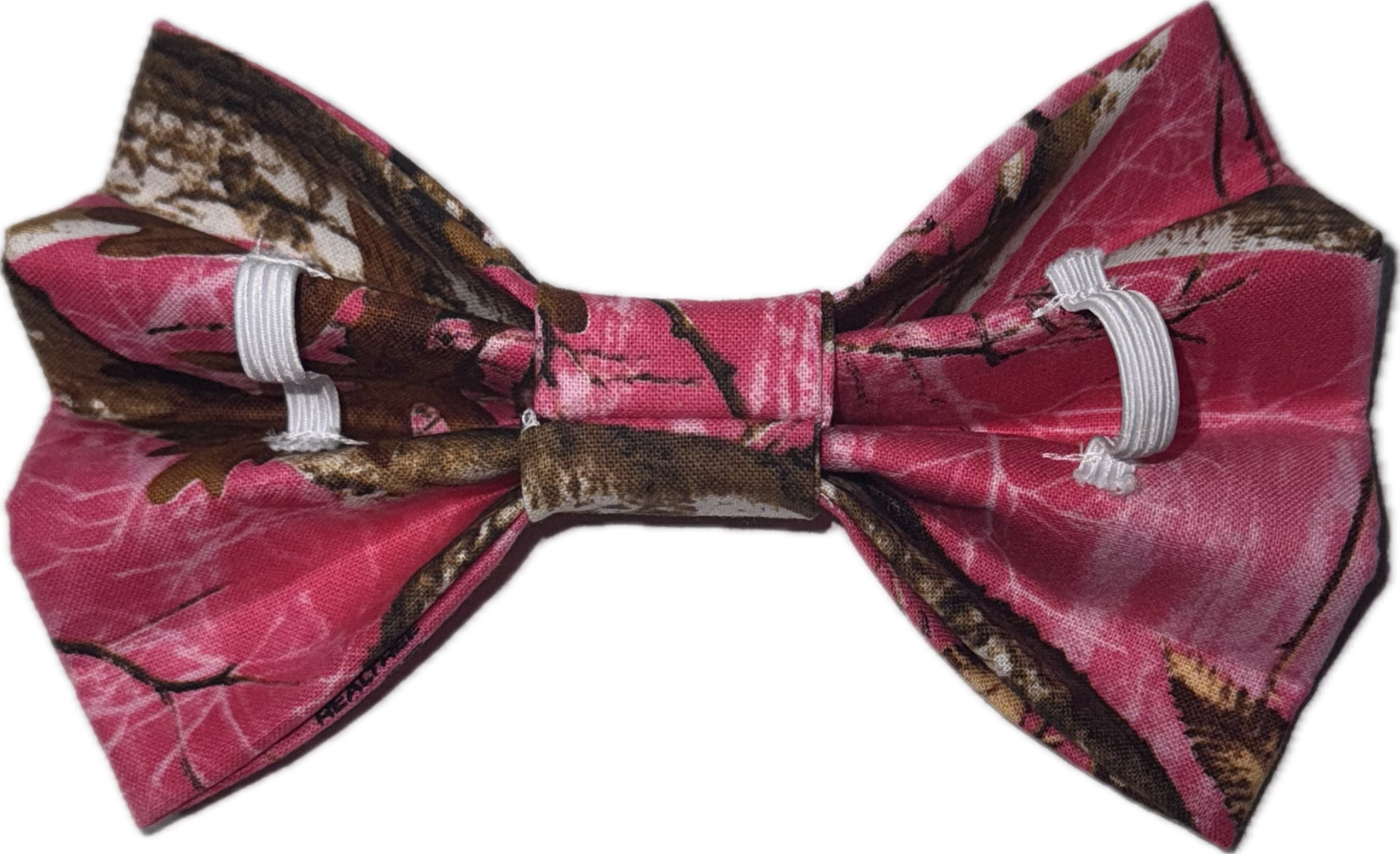 Each Bow tie is made with a cotton fabric, interfacing and has 2 pieces of elastic sewn into the back of the Bowtie that fits around your dog's collar. All bows are handmade from the same fabric but may have slight pattern variations.