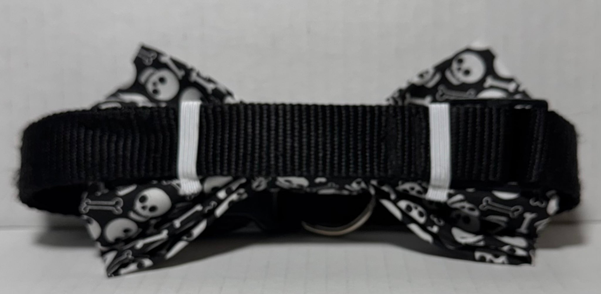 Each Bow tie is made with a cotton fabric, interfacing and has 2 pieces of elastic sewn into the back of the Bowtie that fits around your dog's collar. All bows are handmade from the same fabric but may have slight pattern variations.